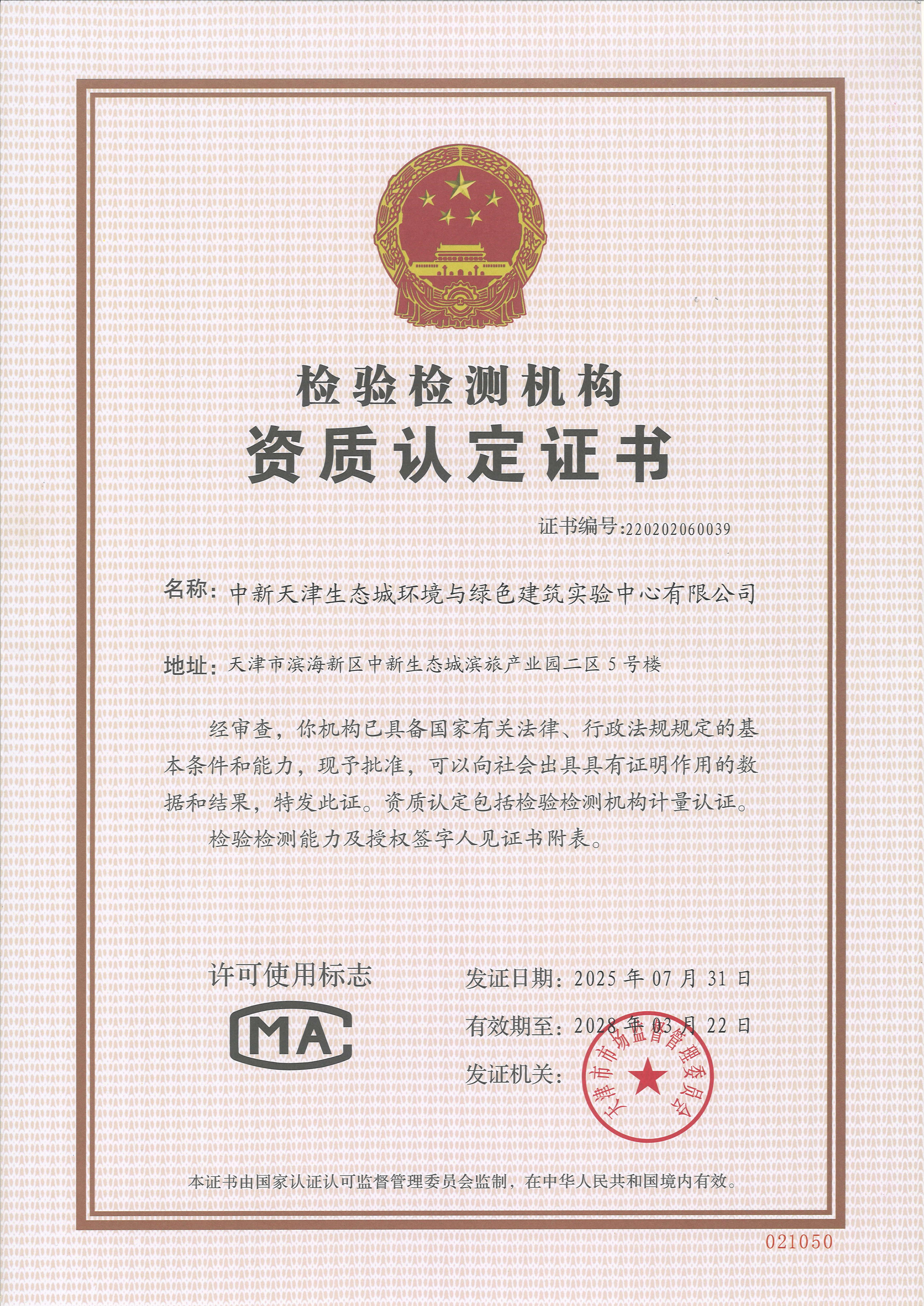 中新天津生態(tài)城環(huán)境與綠色建筑實驗中心有限公司
